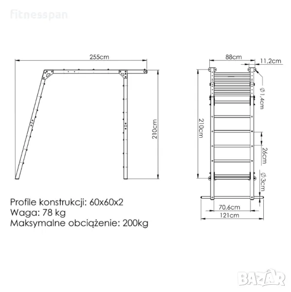 Рамката на гимнастическа стълба MO-016 е изработена от