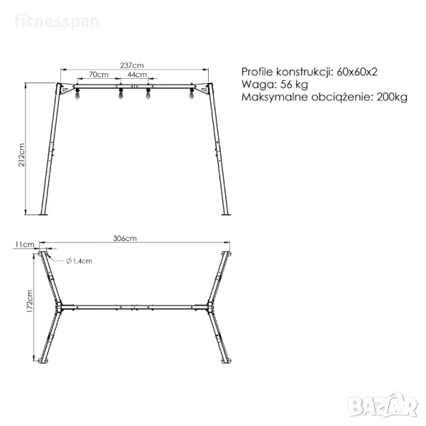 в рамката, която е широка над 3 метра. Максималната товароносимост на люлка