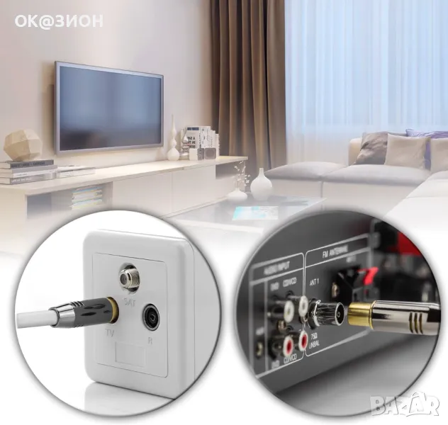 • Прецизно монтиран, особено проводим позлатен TV щепсел / TV гнездо от метал // Отлично предаване без загуби, качество на сигнала и издръжливост // Гъвкав кабел - идеален за полагане