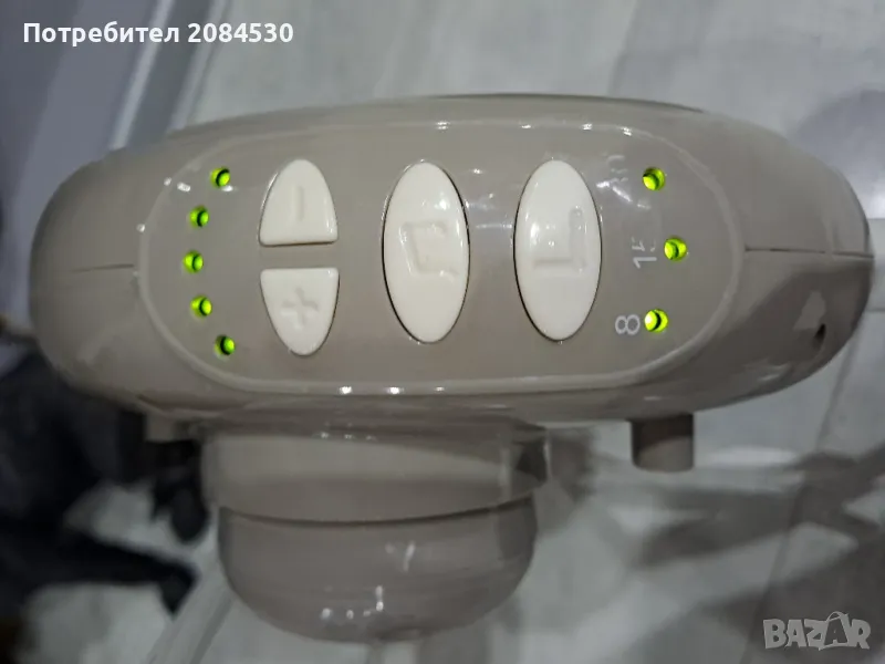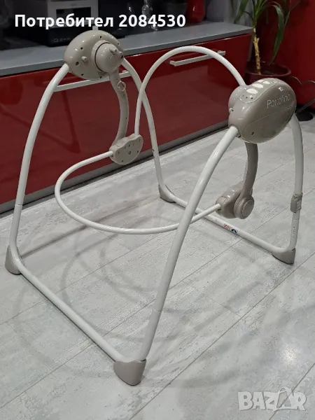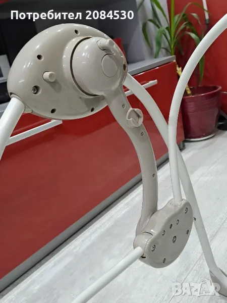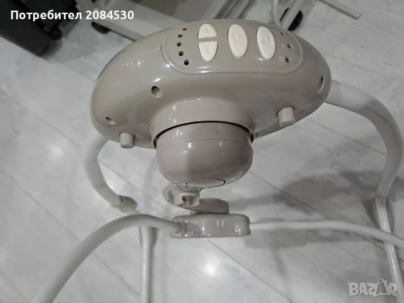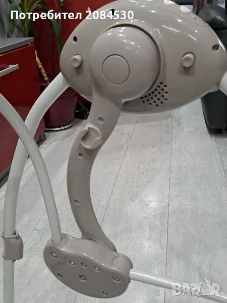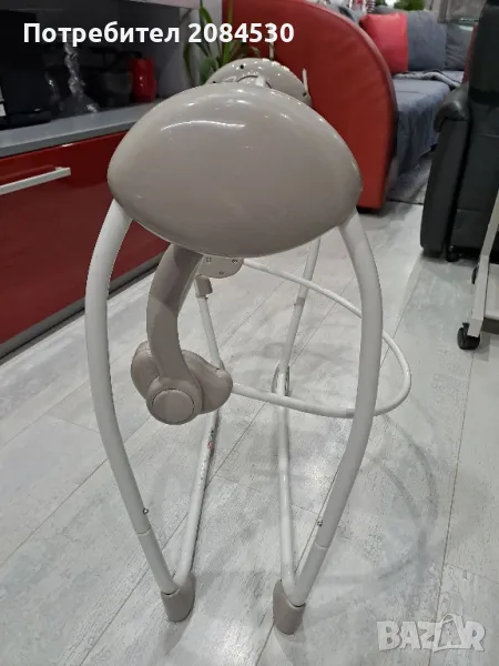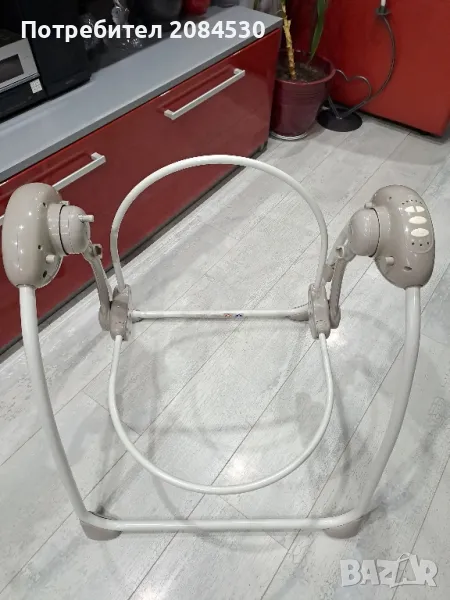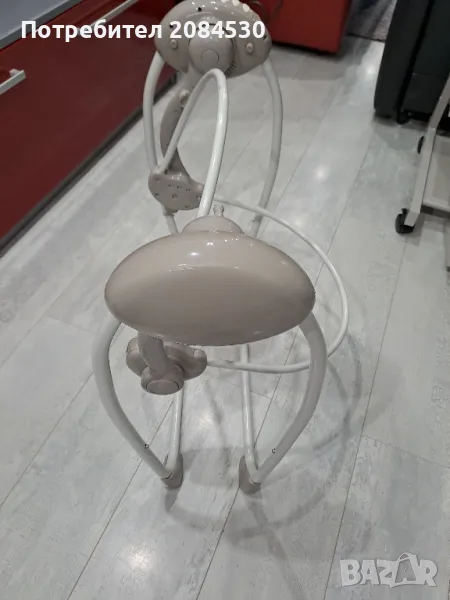 Внос от Австрия в много добро състояние. Регулиране на силата и времето на люлеене.Музикална.Смяна на песента Регулиране на силата на звука.Работи с 4 броя батерий.Липсва тапицерията за сядане.Пращам с куриер. Ширина 55см,височина 65см,дълбочина 67см(в разкрачено положение)