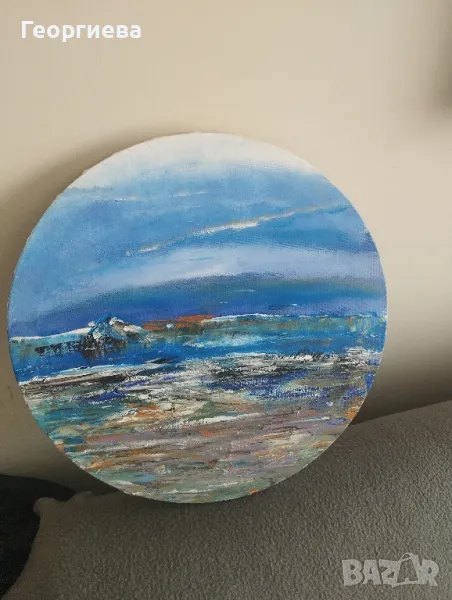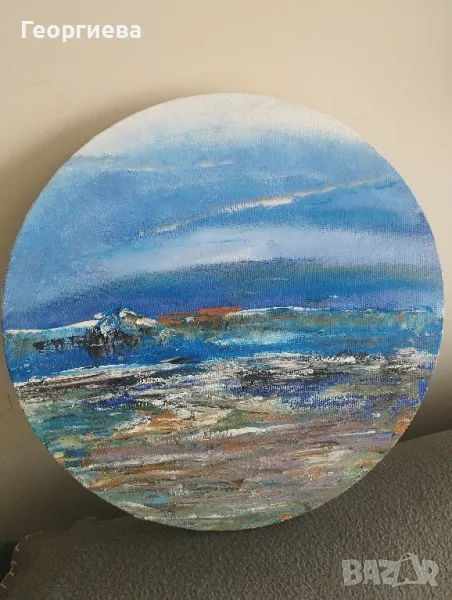 Продавам красива картина" Морски блянове" в кръгла форма с диаметър 40 см. Масло от известния видински художник Георги Георгиев.