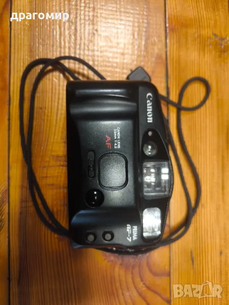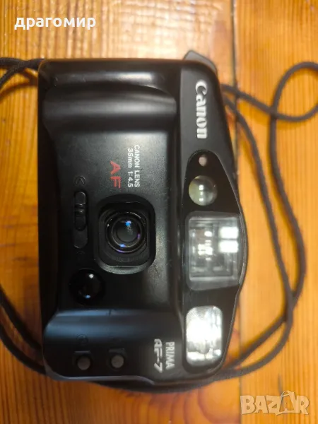 продавам лентов фотоапарат, работи с две батерии АА по 1, 5 v,с кожен калъф, Canon PRIMA AF-7, имам още много други фотоапарати, камери, обективи, чанти, светкавици, батерии, зарядни устройства, касети, филтри, ремъци, ленти, при закупуване на повече неща отстъпка