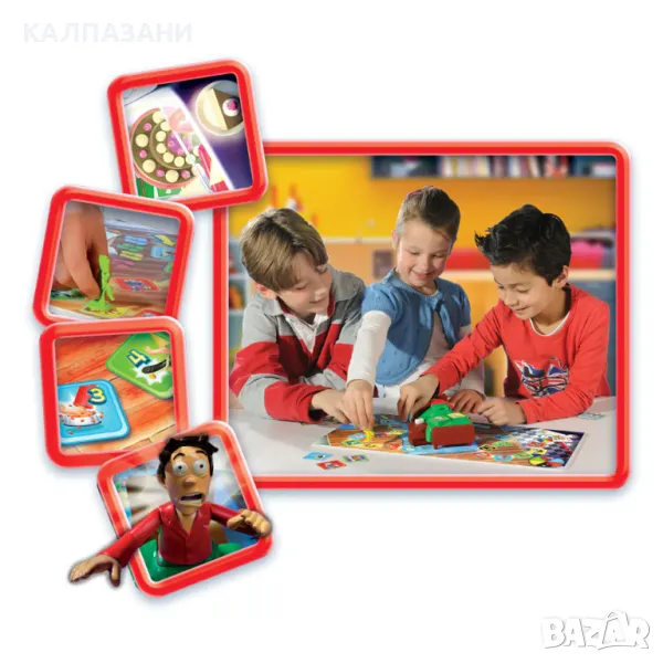 Кой би могъл да устои на вкусна шоколадова торта? Не и децата! Докато татко току що е заспал и хърка в леглото си, тези малки палавници използват възможността, за да се промъкнат до хладилника. Но внимавай, има капани! Трябва да бъдеш много внимателен, за да избегнеш шумните препятствия по пътя и да не събудиш татко! Целта е да стигнеш до шоколадовата торта в хладилника, без да събудиш татко! Сложи игралното поле на масата. Залепи зелените и жълтите стикери на одеялото на татко, както е показано на картинката. Разбъркай картите и ги разпредели поравно на всички играчи. Картите се раздават с лице нагоре пред играчите. Всеки играч избира цветна пионка и я слага на чехлите със същия цвят. Сложи татко да спи в леглото. Започни играта, като натиснеш бутона, намиращ се от долната страна на леглото, в позиция ‘I’. Разположи леглото със спящия татко в отворите на игралното поле. Татко спи и бъди сигурен, че не искаш да го събудиш. Ще го чуеш да хърка! Ти ли си първият играч, който достигна последното червено място? Имаш ли тази карта или татко не се е събудил, докато си натискал алармата? Тогава ти си първият играч, който е достигнал до шоколадовата торта, и ти си победител! Поздравления!