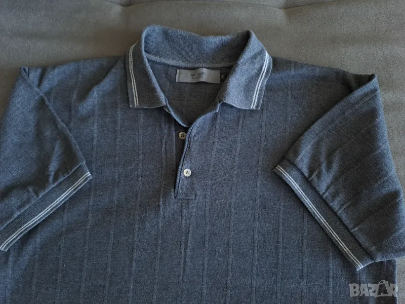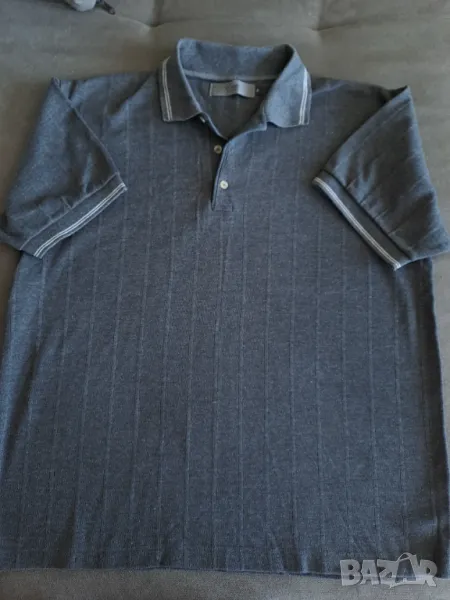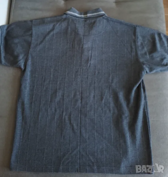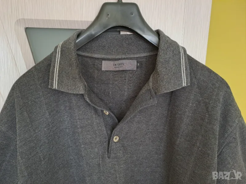 Мъжка блуза с къс ръкав VICENTE, трикотажна плътна материя 80 % памук и 20 % полиестер. Цвят стоманено сив с бели ивици на яката и ръкавите. Размер отговаря на ХL-2ХL, гърди отпред измерено 60 см /или 120 см обиколка, дължина 70 см. Като нова е. Отговарям на съобщения тук, изпращам с куриер с отстъпка, преглед и тест, или лично предаване в София.