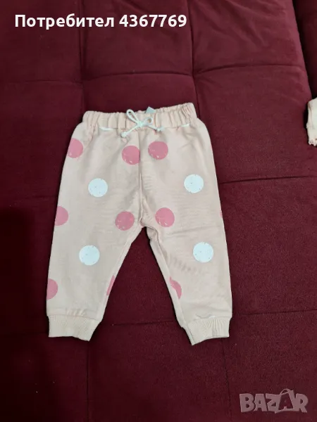 Красив комплект за момиче в бебешко розово със зайче и панталонче на големи точки