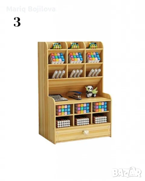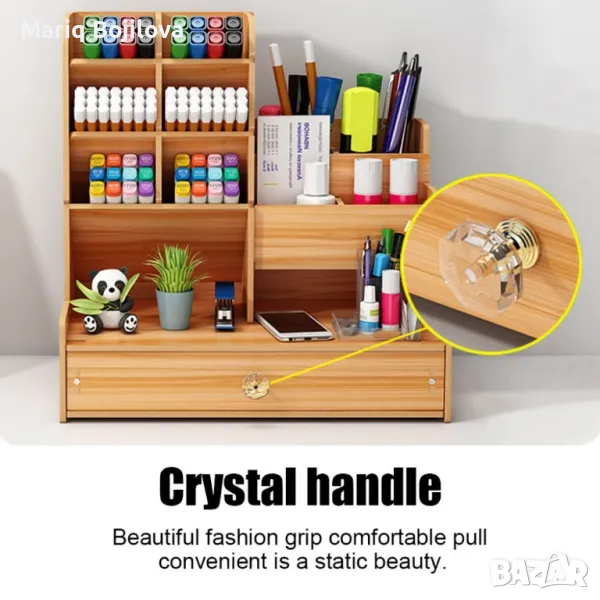 Дървен органайзер за бюро с чекмедже и многосекционно съхранение