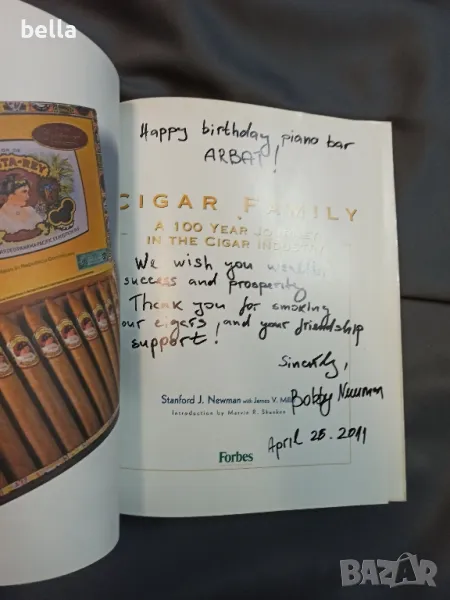 Луксозно рядко издание с автограф на член от семейството ,фамилия Нюман била е подарена и подписана за пиано бар Arbat- Cigar Family a 100 Year Journey in the Cigar Industryтова е тяхната история от 100 години в производството на