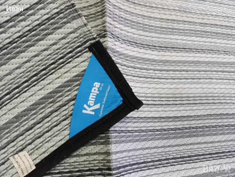 Луксозни дишащи къмпинг килими Kampa. Може да се използва както във форселти на каравани, така и под шатри или тенти на кемпери. За палатки или просто на открито пред вашата каравана в къмпинга. В много добро състояние, само тук там малки следи от изцапано с кал.