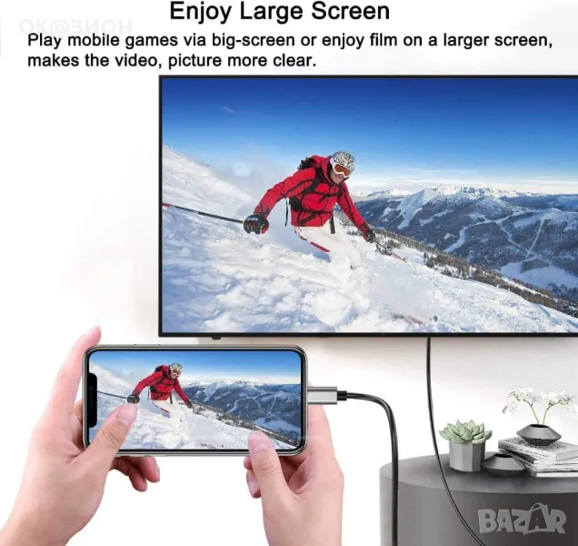 - 【Характеристики】С този кабелен адаптер от телефон към HDMI HD TV можете лесно да свържете своя телефон/пад към HDTV, монитор или проектор с HDMI вход. Свързвайки устройството към големия екран, то е идеален инструмент за гледане на телевизионни предавания, срещи, игри, видео разговори или разширяване на работното пространство. По този начин вие не само се наслаждавате на големия екран, но и предпазвате очите си.