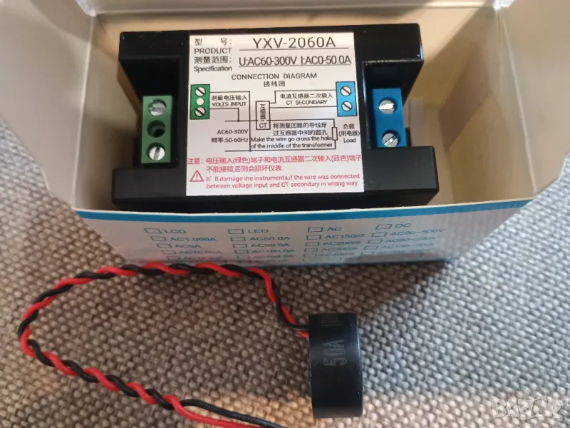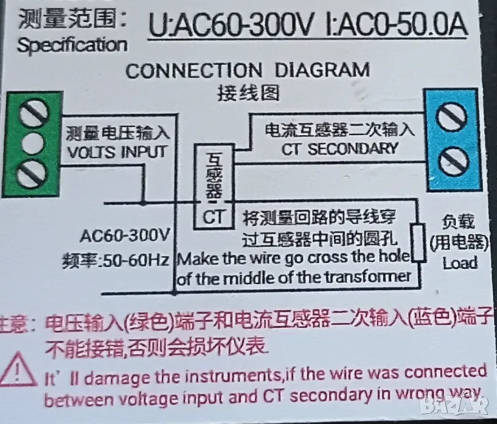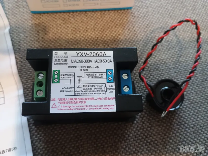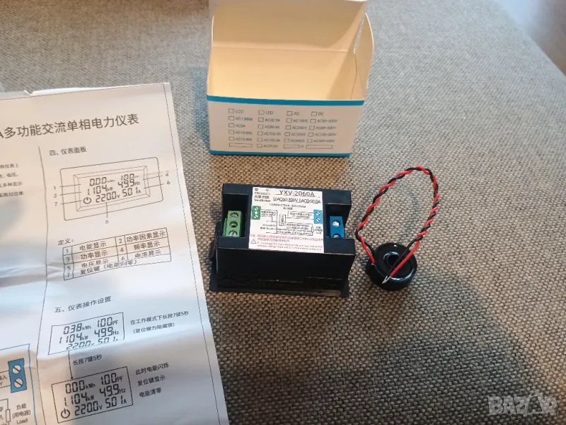 Предлагам качествен тайвански портативен мрежови AC 60~300V / 50A мултиметър за вграждане с мултифункционален Тъч LED LCD дисплей измерващ в реално време всички Ел параметри на консуматорите и мрежата: