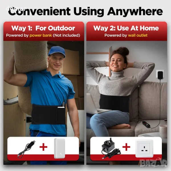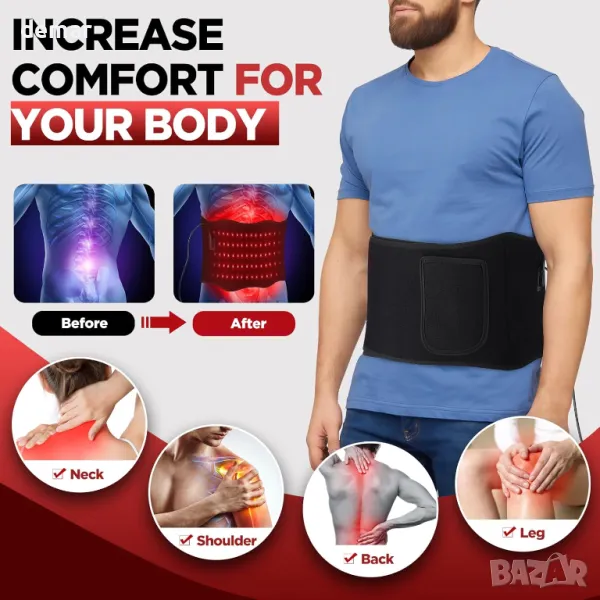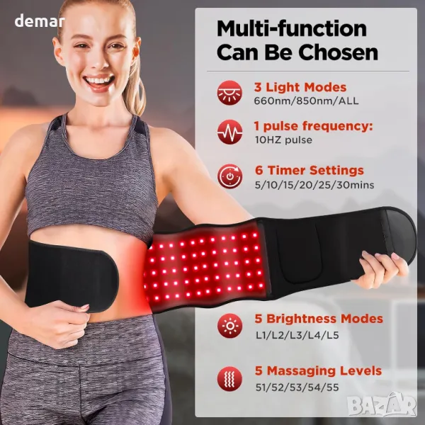 Масажен колан с червена светлина, 660nm и 850nm, 5 режима и 5 нива