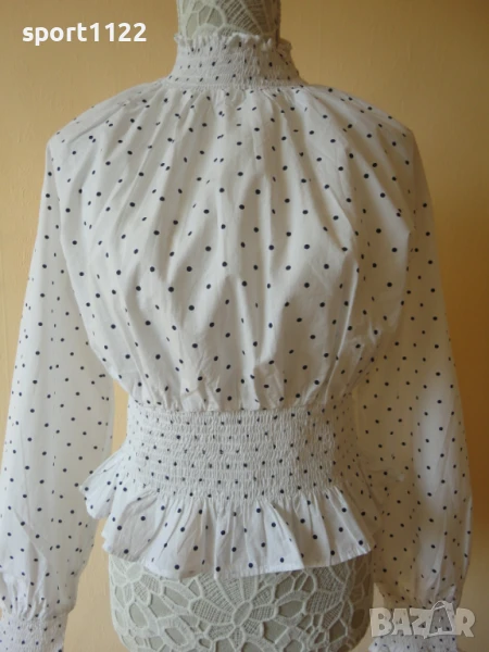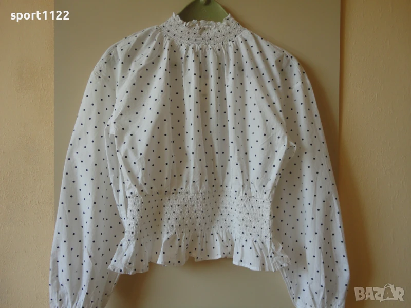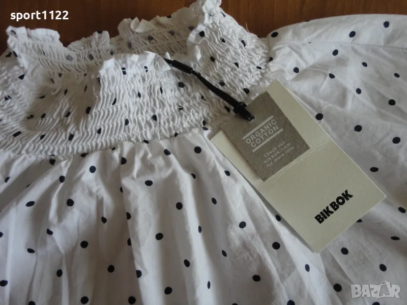 Блузка Bik Bok, размер S, нова с етикет. 100% органичен памук. Има ластичета на яката, ръкавите и талията, със смъкнато рамо е. Дължината на рамото и ръкава общо е 76 см, ГО едностранно е 55 см, тъй като е набрано, ширина на талията без разтягане 34 см.