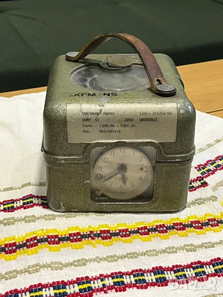 Стар колекционерски часовник за състезателни гълъби.Произведен е около 1950година.Състояние видимо на снимките.