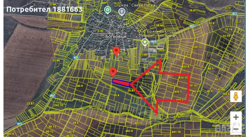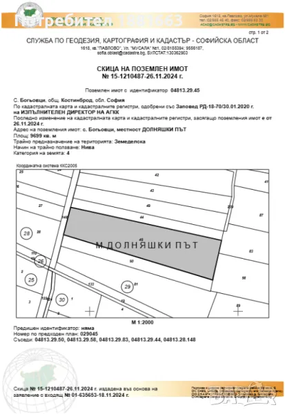 асфалтовия път и трафопост. Готови документи за сделка. Идентификатор на имота 04813.29.45