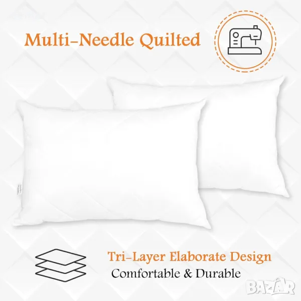 Класическа ватирана пухена възглавница ComfortAce, луксозен 3-слоен дизайн, 48 cm x 74 cm