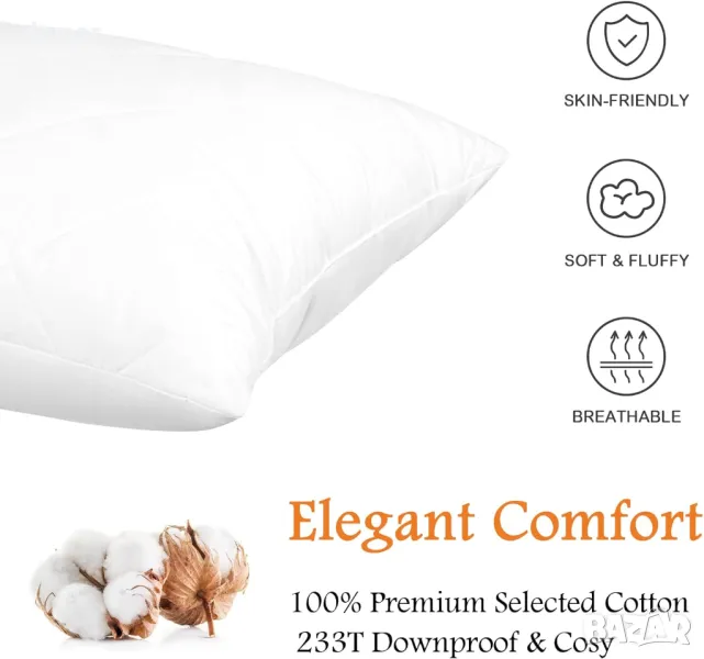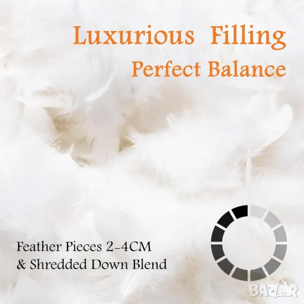 Изработена от 100% памучна материя, устойчива на пух, тази възглавница предлага гладко, луксозно усещане, като същевременно предотвратява набождането на перата. Пълен със смес от европейски стандартни пера и настърган пух, той балансира плюшеността с подкрепа за комфортен сън. Неговата издръжлива трислойна конструкция, проверена от Oeko-Tex Standard 100, осигурява дишане и дълготрайност. Дизайнът с диамантено покритие поддържа равномерно разпределение на пълнежа, осигурявайки постоянна опора през цялата нощ. Подходящ за всички позиции на спане, той насърчава правилното подравняване на врата и главата за спокоен сън. Лесен за поддръжка, може да се пере в пералня на 40°C и да се раздуха, за да възстанови формата си.