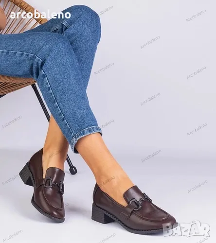 Кафяви дамски обувки на висок ток с метална декорация Sopolino