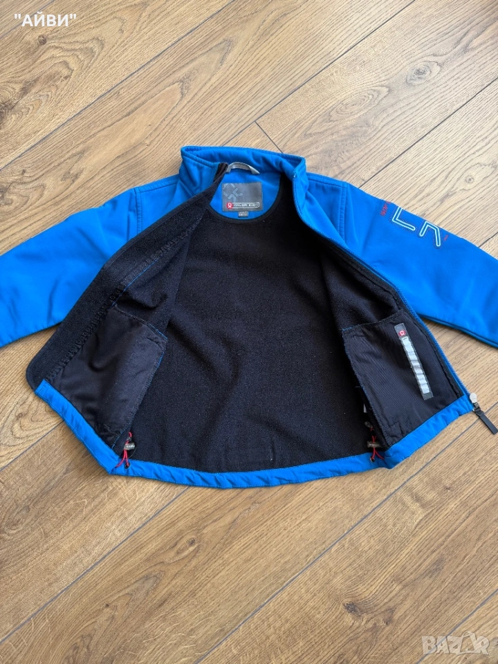 7,8,9,10 снимка Софтшел яке на марката COLOR KIDS от ветроустойчива, водоустойчива функционална материя с прегънати шевове и столче яка. С цип отпред, предни джобове с ципове, рипсени кантове в краищата на ръкавите и светлоотразителни детайли, регулираща се талия със стопери. Цена 15лв.