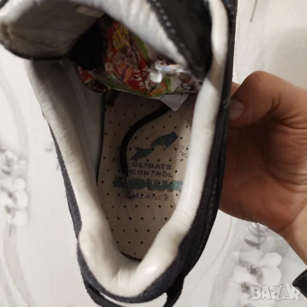 Цялата подплата е от телешка кожа, осигуряваща плътно прилягане, а горната част е от водоустойчива кожа набук.