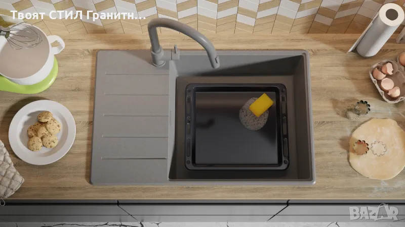 Сив кухненска мивка от гранит Копенхаген 780x500 Top 60 → Обява 48981282