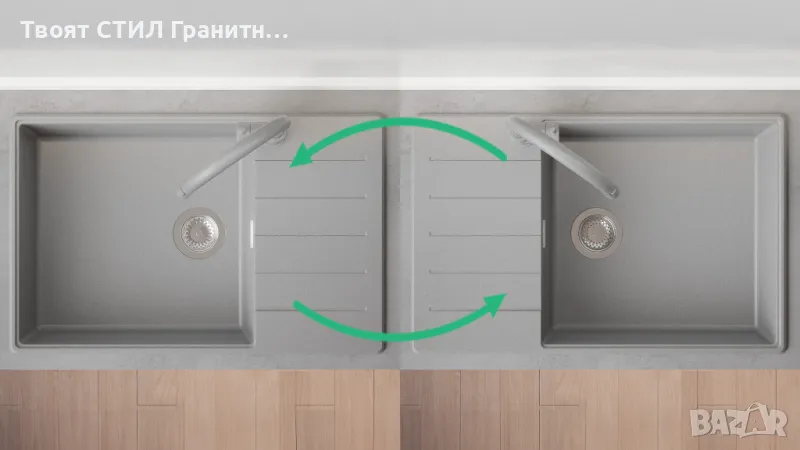 • Гъвкавост на дизайна - мивката е въртяща се - отцедникът може да се монтира отдясно или отляво