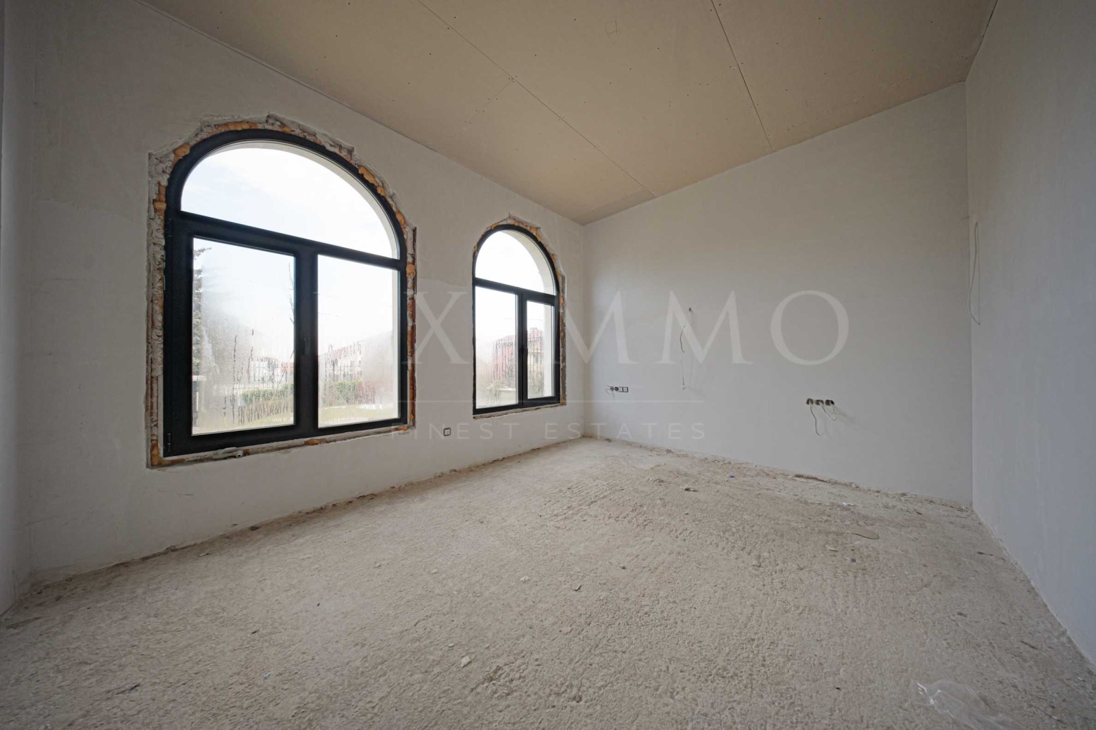 Къщата е триетажна, със самостоятелен терасиран двор от 252 кв.м, отлично поддържан, с възможности за градинарство или отдих на открито. Затворената и сигурна среда прави мястото изключително привлекателно за семейства, които търсят комфорт, спокойствие и високо ниво на сигурност.