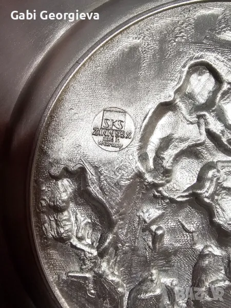 Пано,чиния за стена от калай Германия, снимка 1 - Антикварни и старинни предмети - 48981437 Пано,чиния за стена от калай Германия, снимка 2 - Антикварни и старинни предмети - 48981437 1/2