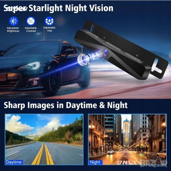Безжична и лесна инсталация: без окабеляване, без пробиване, без необходими познания за монтаж. Само за 3 минути и 2 стъпки можете да инсталирате тази камера за задно виждане безжично: прикрепете камерата за задно виждане на автомобила към държача за регистрационния номер и включете монитора. Спестете разходи и време за монтаж!
