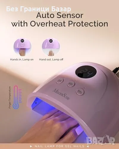 Интелигентен сензор и таймер – Автоматично включване/изключване при поставяне/премахване на ръката. Избор между 30s, 60s и 90s таймери.