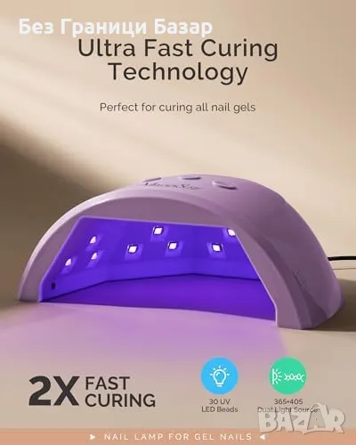 Бързо и ефективно сушене – 36W мощност с 30 двойни LED UV диода за бързо и равномерно втвърдяване на всички видове гел лакове.