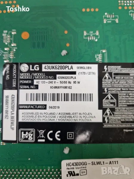 LG 43UK6200PLA EAX67872805(1.1) 65361703 EAX67209001(1.5) LGP43DJ-17U1 PANEL HC430DGG-SLWL1-A111 → Обява 48981607