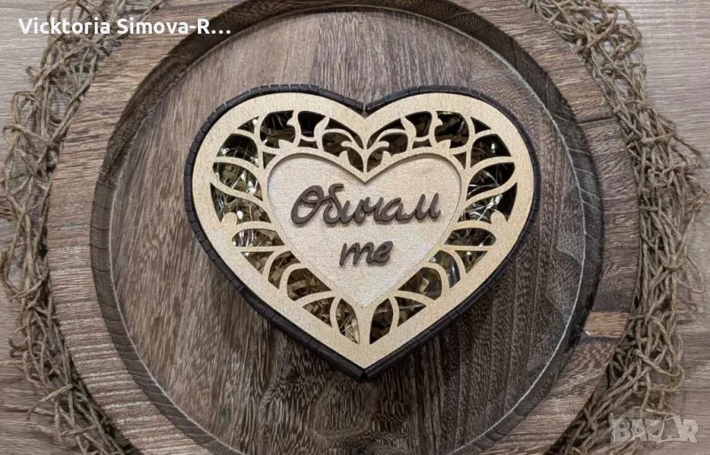 Дървена кутия сърце за бонбони/бижу и тн., с включени в цената към нея лампички и батерии - цена 25лв.