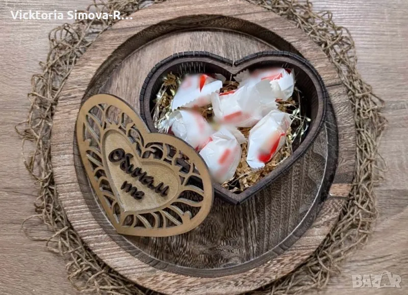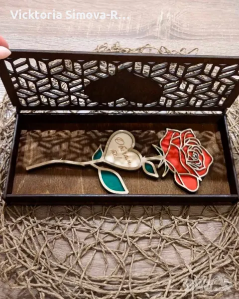 Дървени: Роза, Роза с кутия и Кутия сърце за бонбони/бижу → Обява 48982019