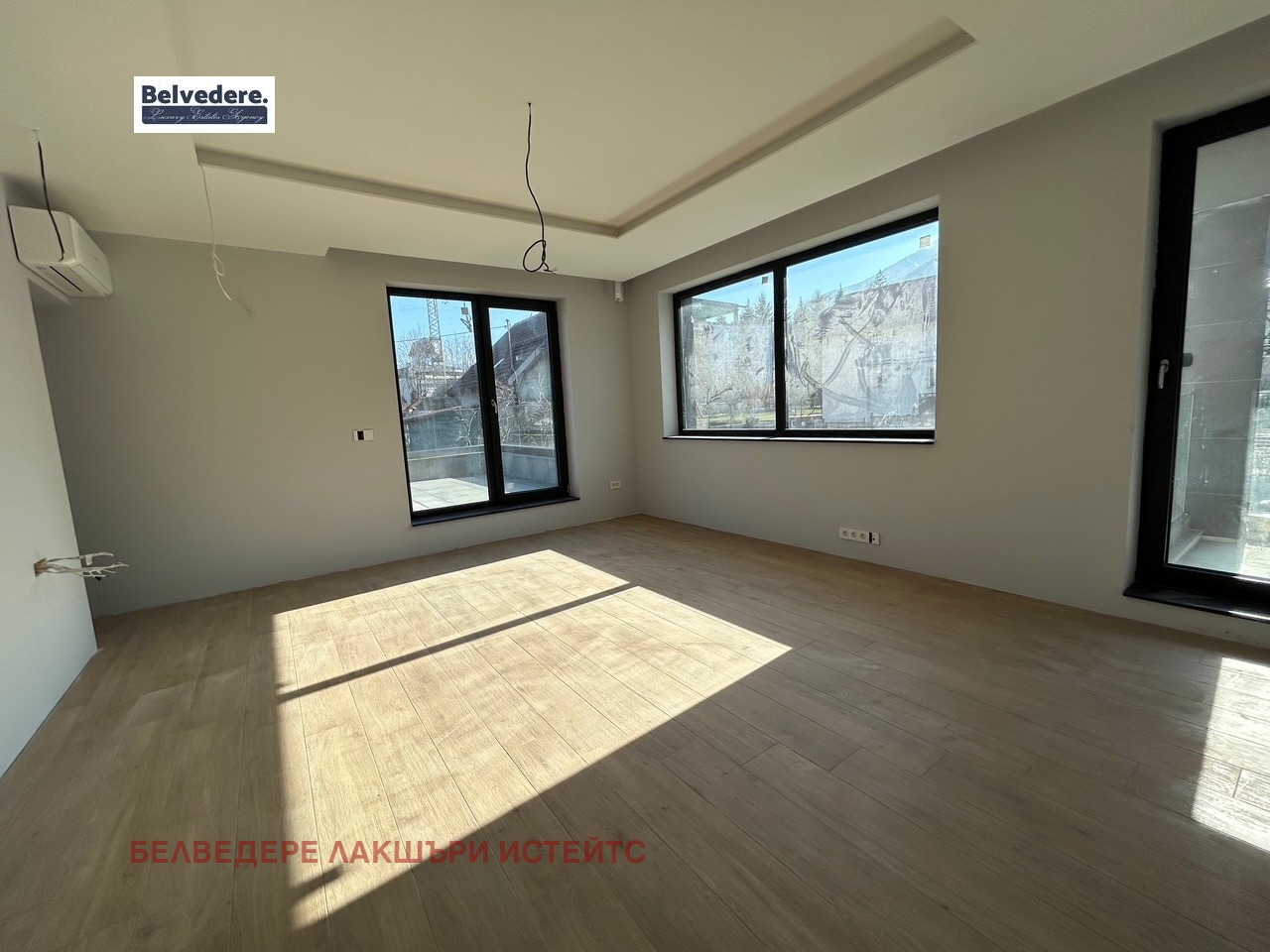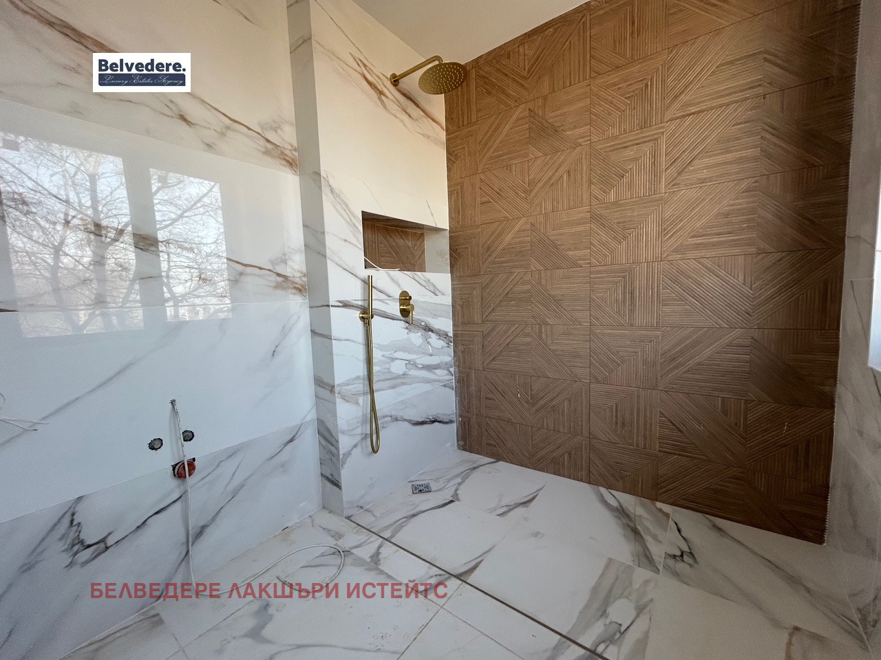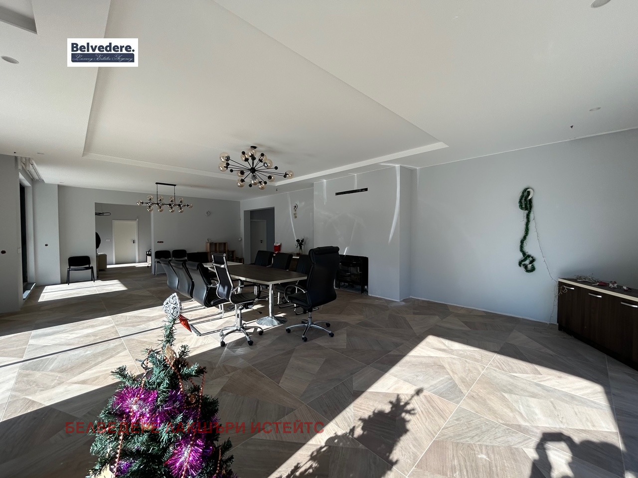 Първи етаж - голямо входно антре,просторна дневна, трапезария и кухня, излаз към двора.На етажа има още офис, гараж за три автомобила.