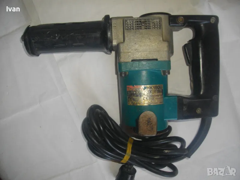 Почти нов, силен и мощен къртач, професионален модел на Макита, със сила на къртене 3,9 джаула. марка и модел на къртача - Makita HK 1800. Производство на машината - оригинално японско - Japan - упоменато на маркировките. Производител - Makita Corporation Japan. С машината е работено, но е със запазен външен вид и отлично техн.състояние. Работи много добре - няма искрене на нивмо четки/ротор/статор. Няма смущаващи вътрешни шумове като тракане, виене, свистене, луфтове. Мощност на мотора - 505 вата, обороти - 0-3200 об./мин. Сила пробив - 3,9 J /джаул/. Малък, олекотен модел - тегло само 3,2 кг. Стоманена редукторна кутия, с ппредпазни метални решетки - охлаждащи ротора. Долен метален допълнителен капак на долната част на корпуса, против влизане на прах в ротора и частта на четките.Задна дръжка - твърда бакелитова пластмаса. Захранващо напрежение - 220-230 волта. Щепсел - евростандарт. Глава - 19 мм A/F шестостенна глава, за шестостенни свердал 19 мм захват. Машината е без свредло. Моля, за пробата в офис Еконт - носете си.