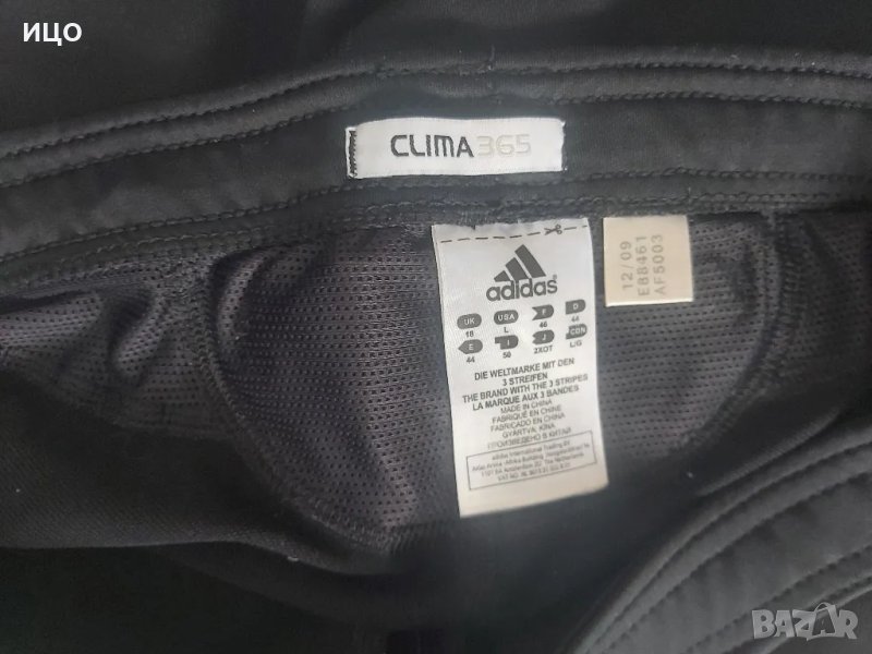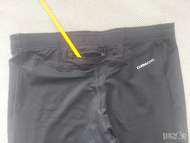 Състояние много добро на дамския клин. Със заден малък джоб с цип и цип на глезените. Леко обелен знак на адидас, има го на последната снимка. Със мрежести отвори на кръста и зад коленете. Дължина от кръста до долу е 91.5см. широчина на кръста е 36см. широчина на глезените е 11.5см. Размер USA L. Цена 30лв.