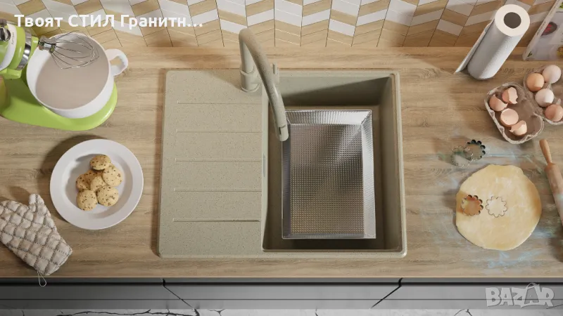 БЕж кухненска мивка от гранит Копенхаген 620х500 Top 45 → Обява 48984089