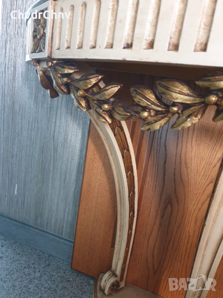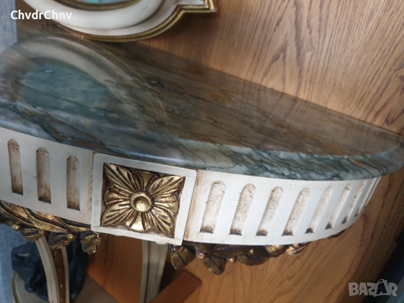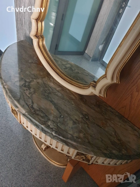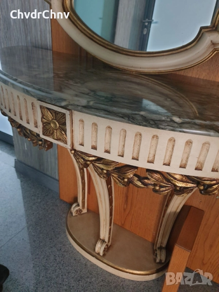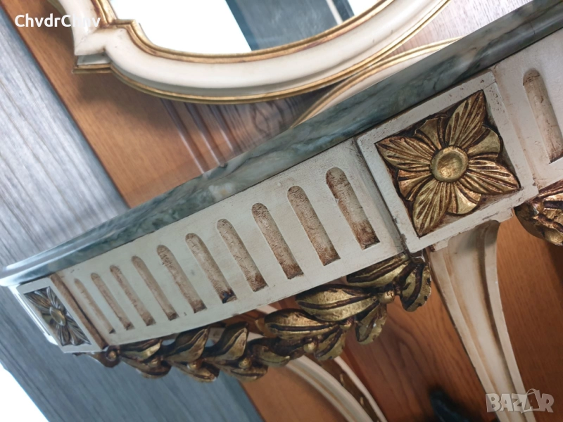 Барокова тоалетка/дървена конзолна масичка с огледало/маса-мрамор-дърворезба