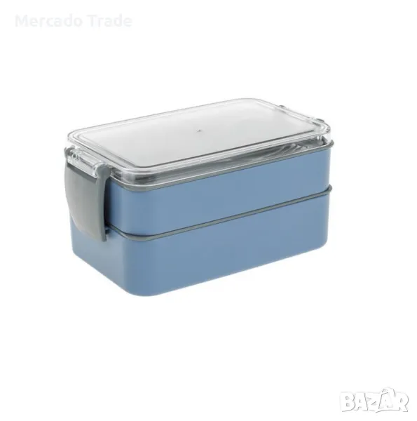 Термокутия за храна Mercado Trade с прибори, 0% BPA с 2 контейнера от 400 и 500 ml, щипка за затваряне, 13,5 cm вилица и лъжица и капак на всеки контейнер.