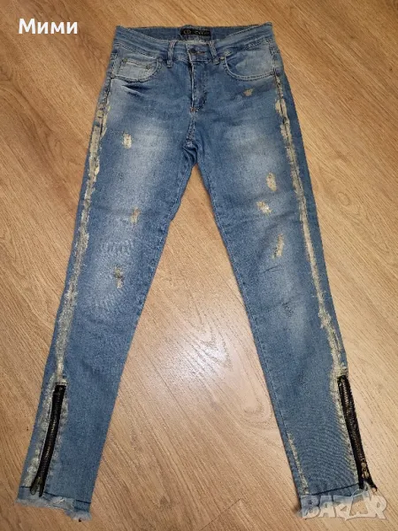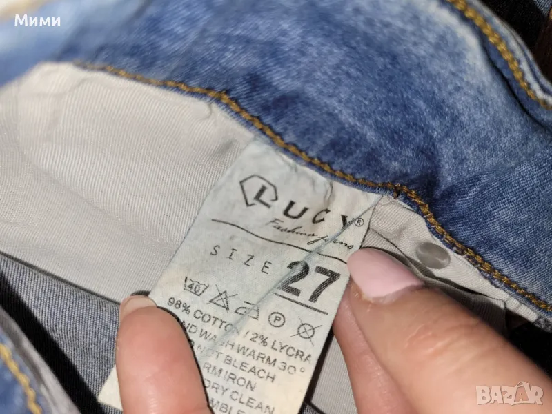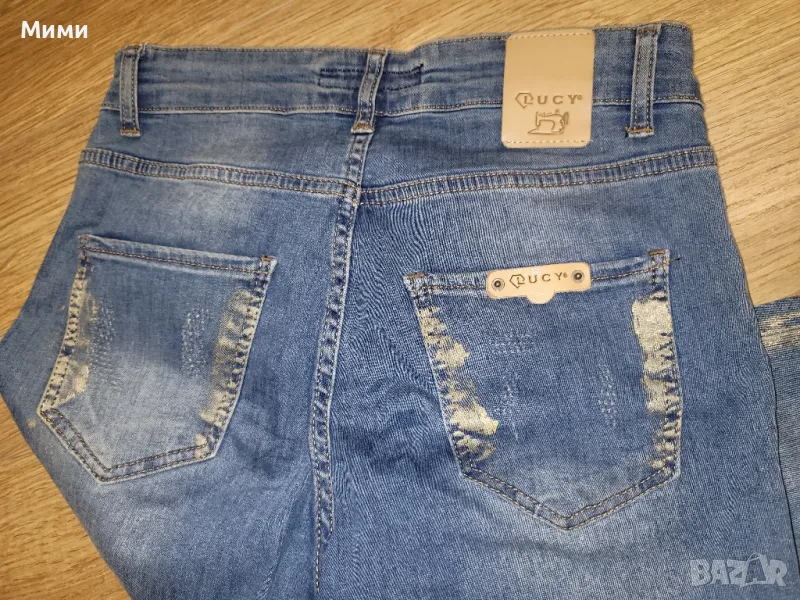 Светло сини дънки Lucy със златен акцент. Размер 27, но имат много голяма разтегливост. Обличани са няколко пъти, без никакви забележки.