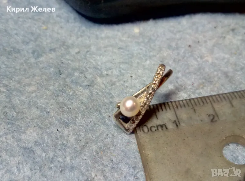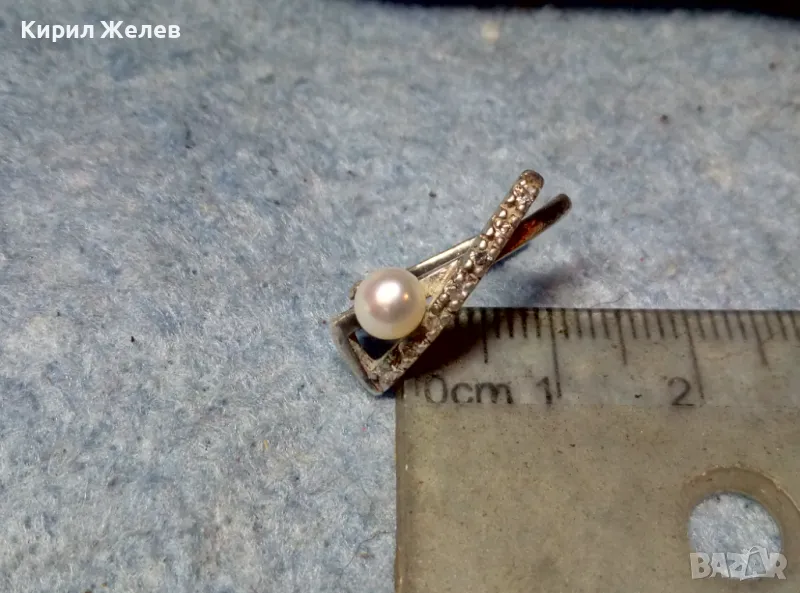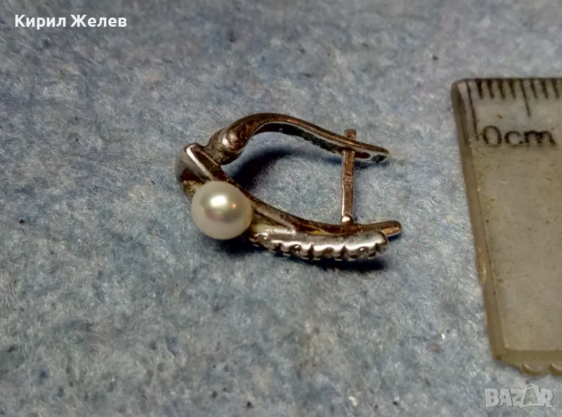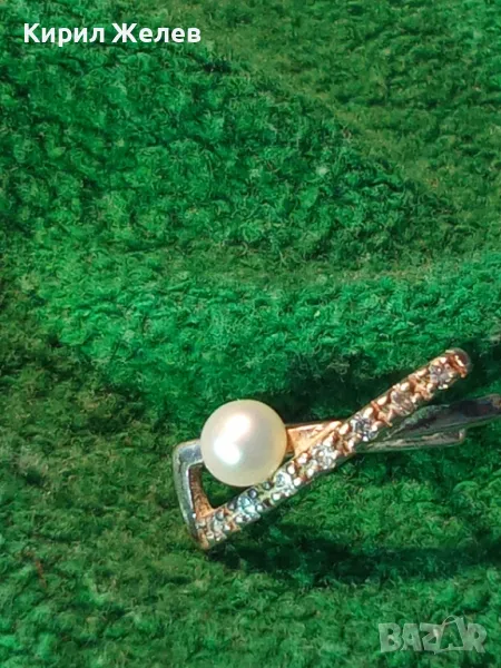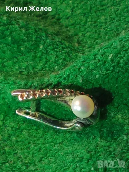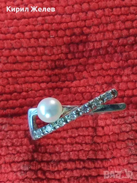 СКЪПОЦЕННА АНГЛИЙСКА СРЕБЪРНА ОБЕЦА СРЕБРО 925 с НАТУРАЛНА БЯЛА ПЕРЛА и МИНИАТЮРНИ ЦИРКОНИ 49864