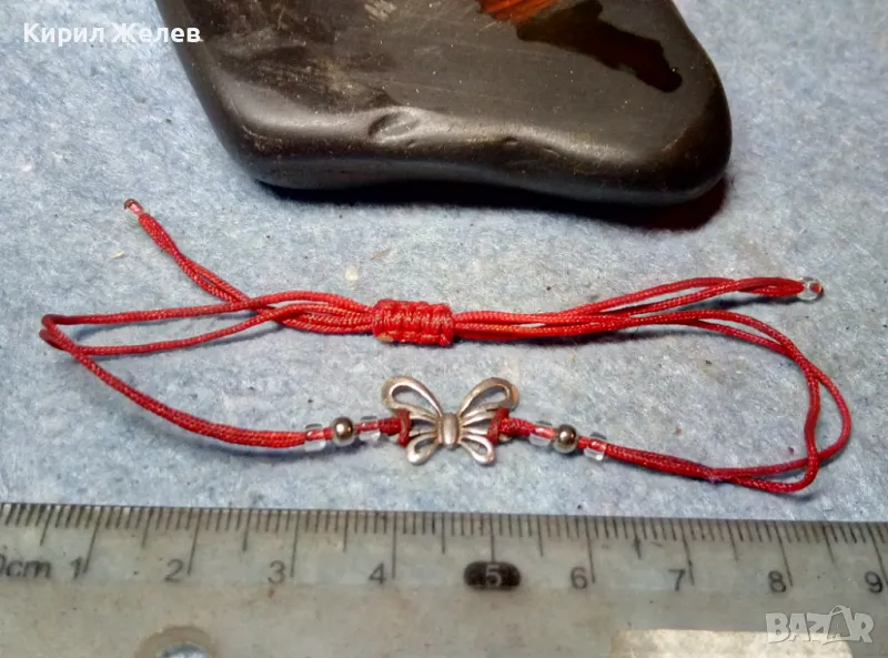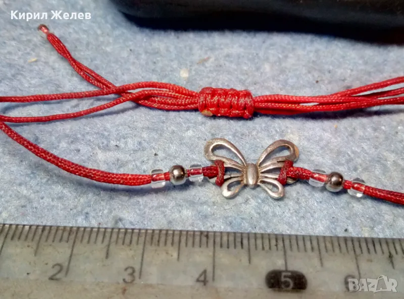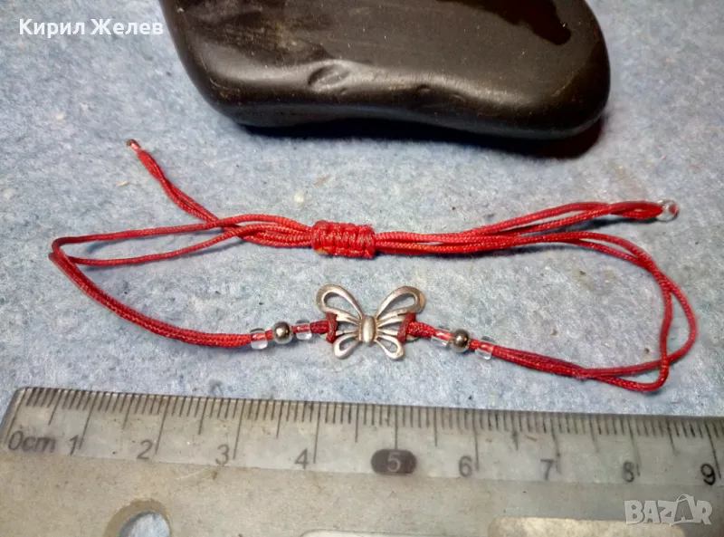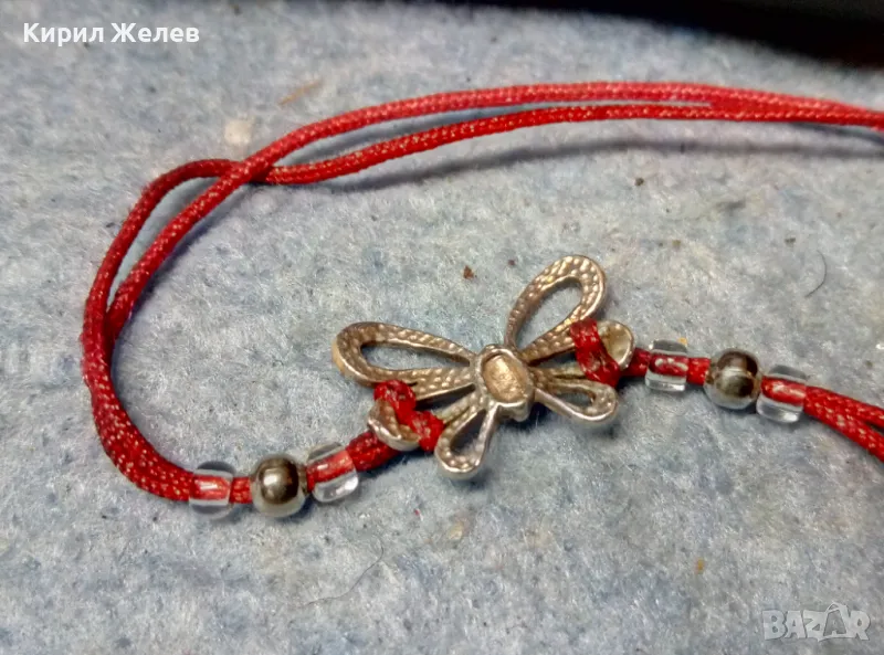 КЛАСИЧЕСКА МОМИЧЕШКА ГРИВНА ЧЕРВЕНО КОНЧЕ със СРЕБРО ВИСОКА ПРОБА и МЪНИСТА СРЕБЪРНА ПЕПЕРУДКА 49735