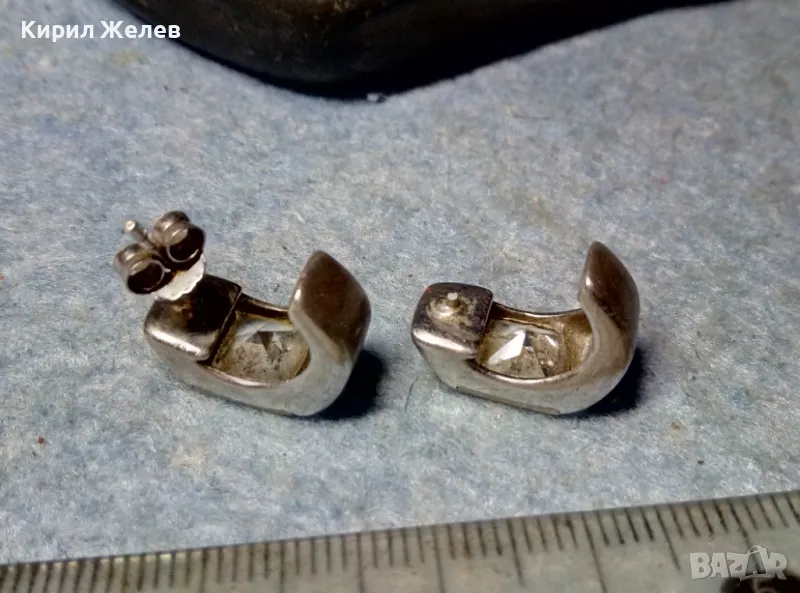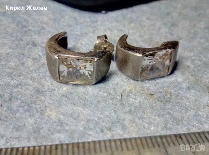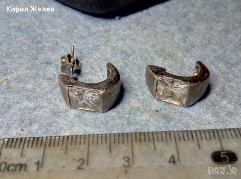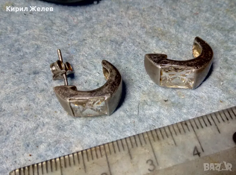 СТАРИ СРЕБЪРНИ ОБЕЦИ СРЕБРО 925 с ФАСЕТИРАН ЛАБОРАТОРЕН МОЙСАНИТ 1-та с НУЖДА от ЗАКОПЧАЛКА 49734