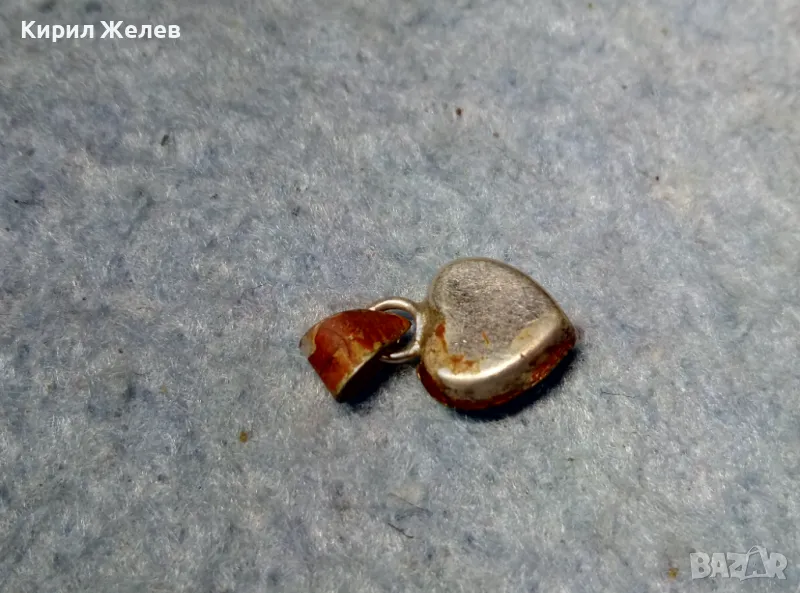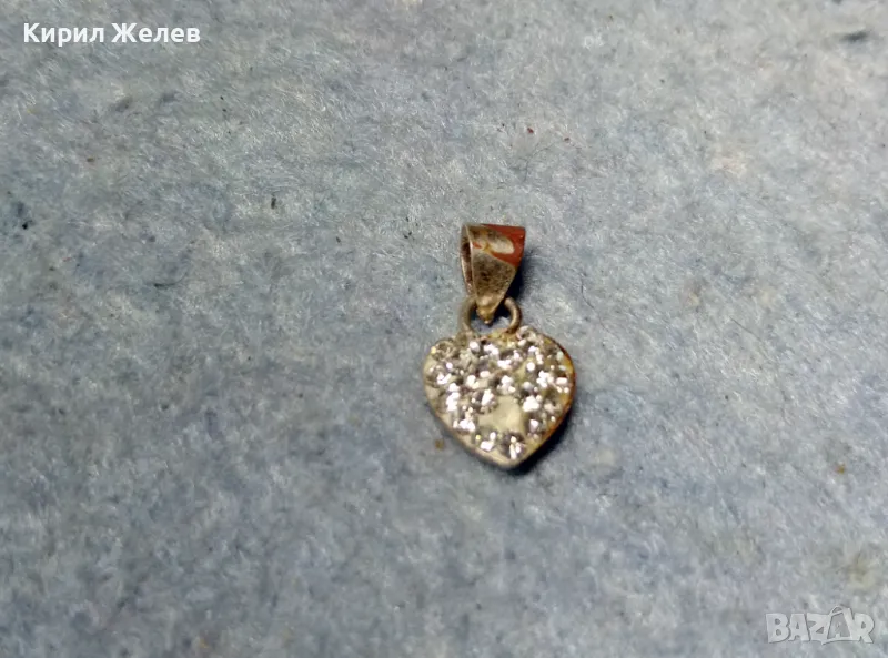 СТАР ЕМАЙЛИРАН МИНИАТЮРЕН СЪРЦЕВИДЕН СРЕБЪРЕН МЕДАЛЬОН СРЕБРО 925 с ИСКРЯЩИ ЦИРКОНЧЕТА 50059