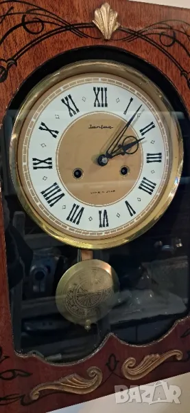 Стар стенен часовник-Янтар, Ussr. Състояние изключително запазен за годините, здраво стъкло,кутияразполага с ключ,махало и т.н. Същият функционира но се нуждае от профилактика, продухване, смазване и настройки,Бие гонг 1/2 и кръгъл час. Часовника работи о/о 1/2 час и спира, за това се нуждае от профилактика и читав часовникар. За колекционери, интериор, декор и по предназначение.Размер 47 на 33 см..
