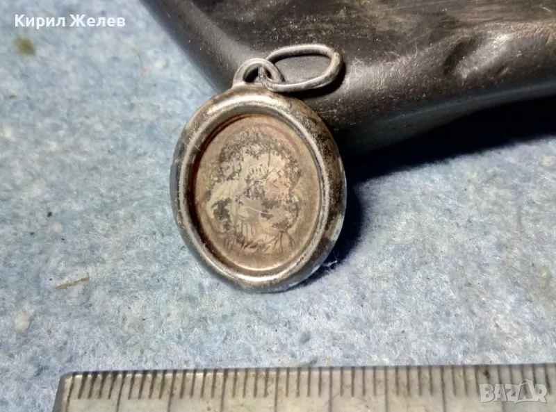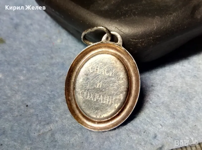 СТАРА СРЕБЪРНА ИКОНКА СРЕБРО 925 С Надпис СПАСИ и СОХРАНИ на ГЪРБА ЛИПСВА ЛИКА с ЕМАЙЛ ОТПРЕД 44404