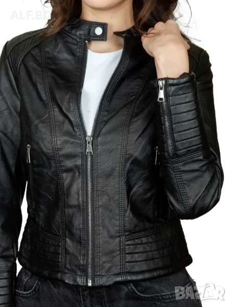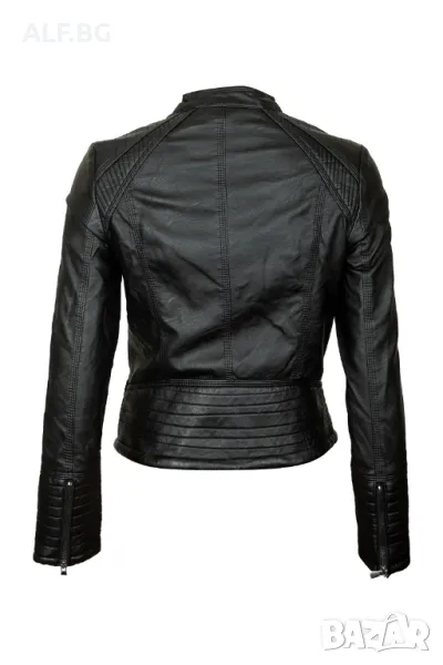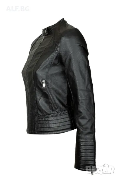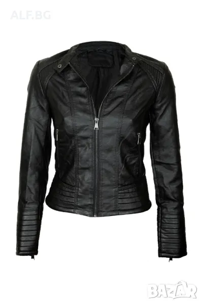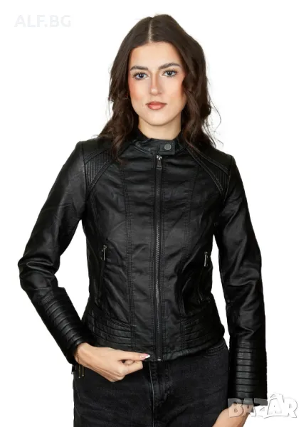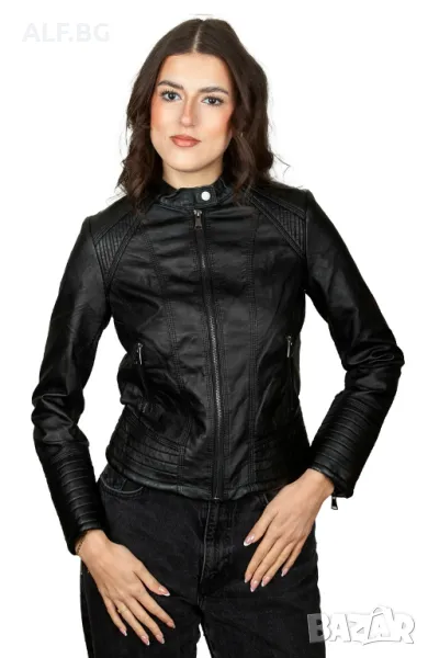 Елегантно дамско кожено яке от висококачествена еко кожа. Кожата на якето е много мека и приятна на допир. Вътрешната част на якето е изработена от шушлякова подплата. Подходящо за пролетно-есенния сезон.