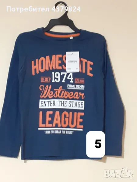 5. Немска блуза марка С&А размер 122/128 см./7-8 години, блуза - дължина 50 см., ширина 35 см., дължина на ръкава от рамото до края 42,5 см, 100% памук.