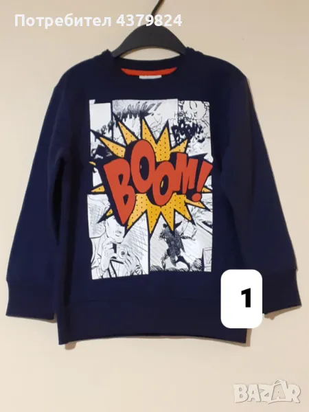 1. Немска блуза марка Ernsting's family Topolino, размер 122 см./7 години, дължина 50 см., ширина 38 см., дължина на ръкава от рамото до края 42 см, ватирана, 84% памук, 16% полиестер.