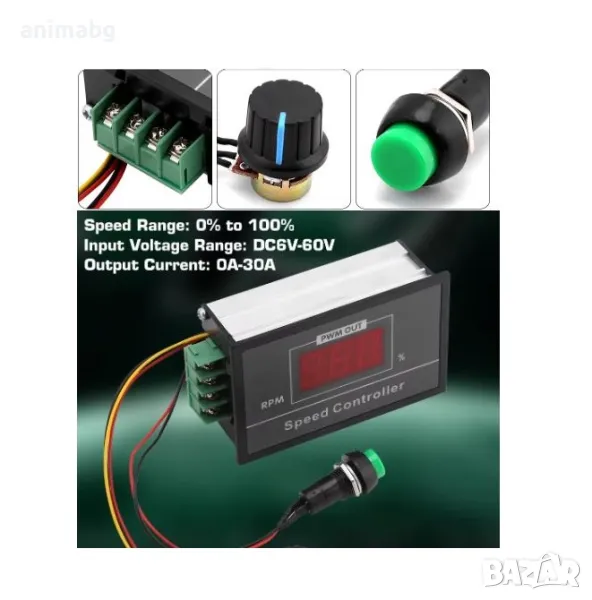6-60V 12V 24V 36V 48V 30A PWM DC контролер на скоростта на мотора